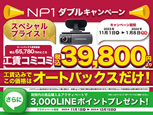 キャンペーン一覧 ホーム キャンペーン一覧 スタッドレスタイヤ出張販売大商談会 in イオンモール扶桑 – 購入&交換その場で可能です! 12月12日(金)・13日(土)・14日(日)に実施12月19日(金)・20日(土)・21日(日)に実施 オ イオンカード分割手数料ゼロキャンペーン – オートバックス限定!分割払いのお客様負担手数料が無料 11月11日(火)から2026年2月10日(火)まで実施 イオンマークが付いたクレジットカードでのお支払いが PayPayポイントが最大5%戻ってくる! – PayPayアプリでクーポンを獲得してオートバックスでお得にお買い物 11月1日(土)から12月31日(水)まで実施 オートバックスで実施!PayPayアプリで事前にクーポンを獲 カーナビ大還元祭 – 2025年冬 オートバックスなら購入金額に応じて最大7万円還元! 11月14日(金)から12月15日(月)まで実施 購入金額に応じて最大7万円還元!2025年秋冬のドライブが 夏タイヤ大還元祭 – 2025年冬 オートバックスはタイヤが安い!サイズに応じて最大15,000円還元 10月24日(金)から12月21日(日)まで実施 購入サイズに応じて最大15,000円還元!2025年秋冬の ドライブレコーダー・電子ミラー大還元祭 – 2025年冬 オートバックスなら対象機種購入で最大10,000円還元! 10月17日(金)から1月12日(月・祝)まで実施 対象機種購入で最大1万円還元!2025年冬のドライブがも 2025年-2026年 オートバックスヒートアップキャンペーン – Tune&Dress up スポーツパーツが安い! 2026年3月31日(火)まで実施中 2026年3月31日(火)までメーカー希望小売価格から最大45%OFF 安全点検を無料で実施しています いつでも無料で実施 安心・快適ドライブのためにドライブ前/後にオートバックスで安全点検をしましょう! オート